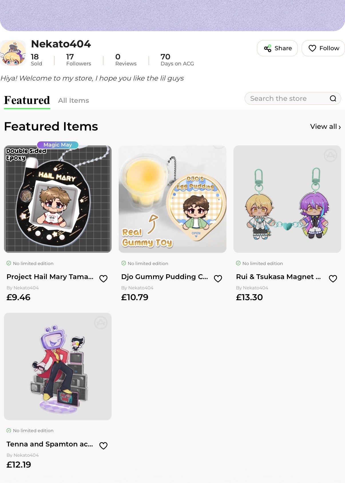 Store temporary shut for house move! Lots of items, including exclusives, available on my ACGGOODS store! (Best option for keychains and non-uk buyers) Nekato404 on the acggoods site :)